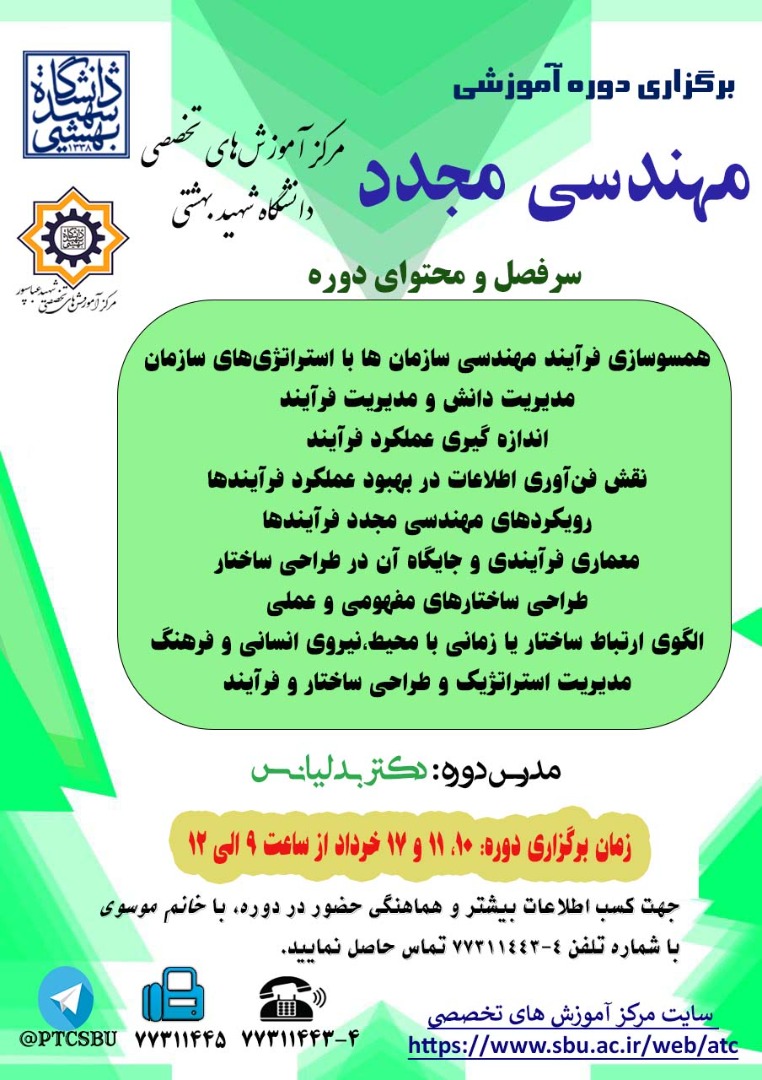 فراخوان دوره مهندسی مجدد 1401