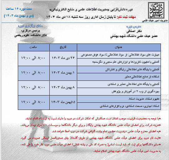 یادآوری می‌گردد گواهی دوره صرفا جهت حضور کامل صادر می گردد.