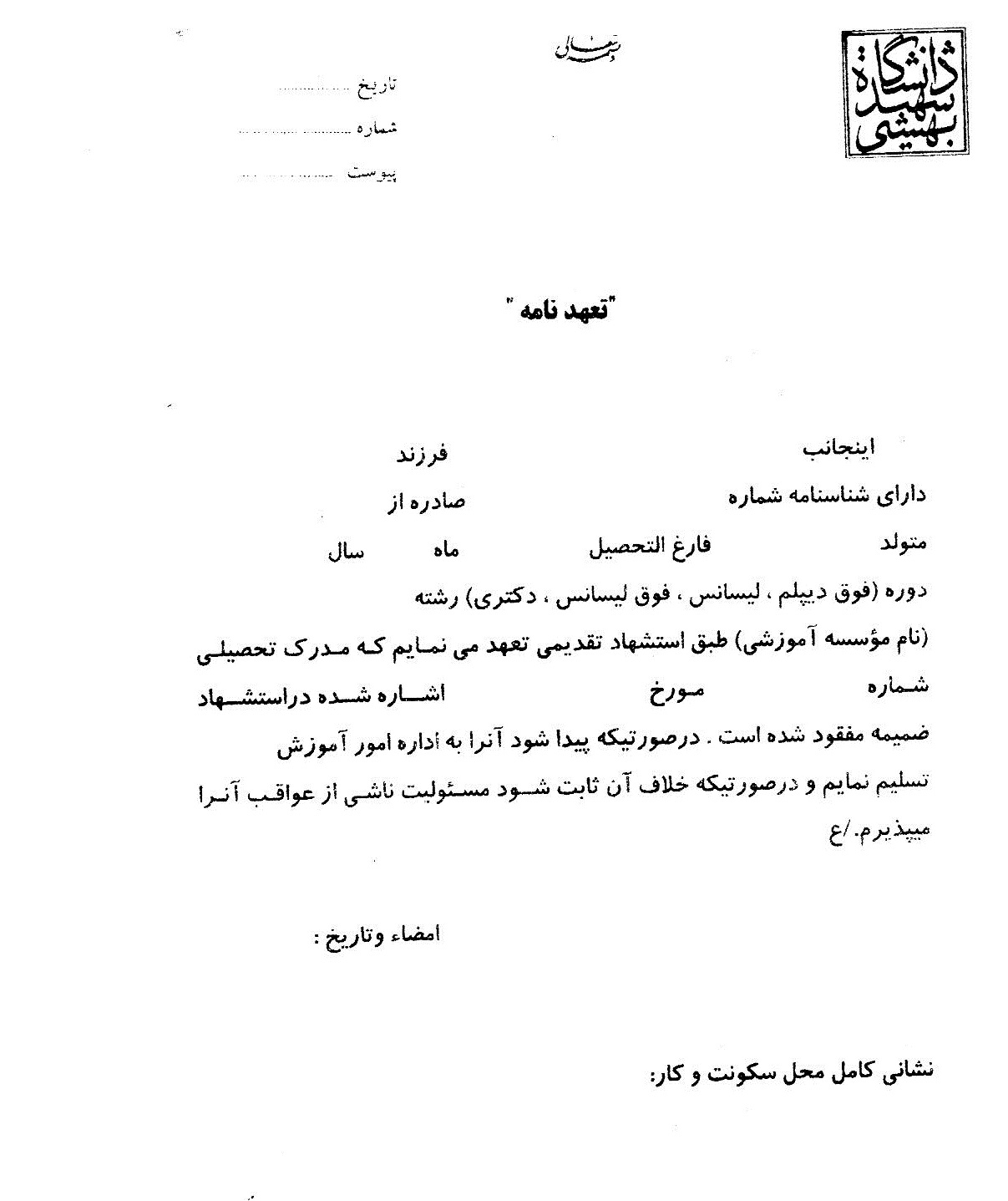 دریافت مدارک (دانشنامه ورودیهای قبل از سال 70):